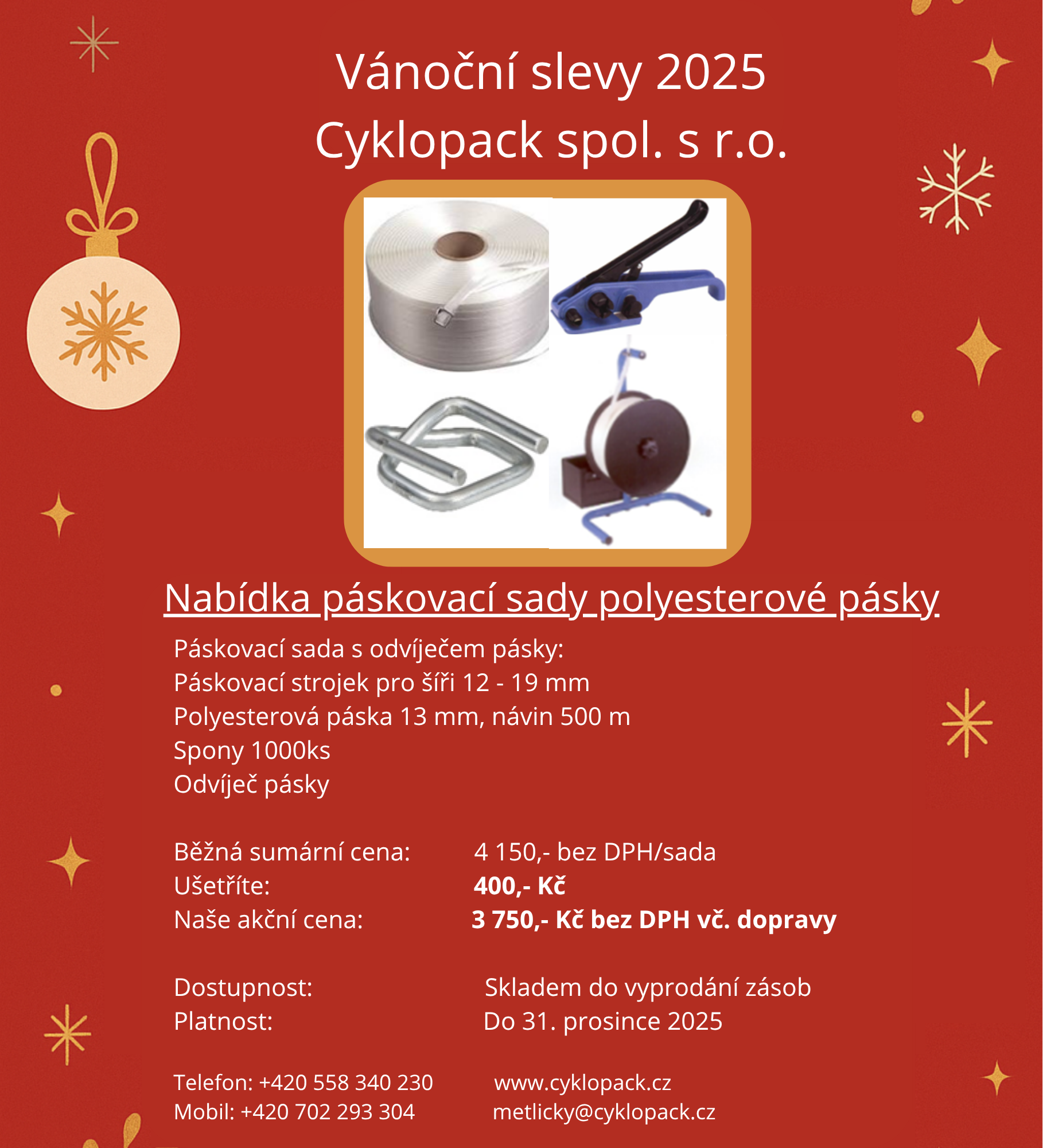 Páskovací sada s PES páskou - výhodná nabídka páskovací sady pro okamžité použití, která zvedne Vaší produktivitu.